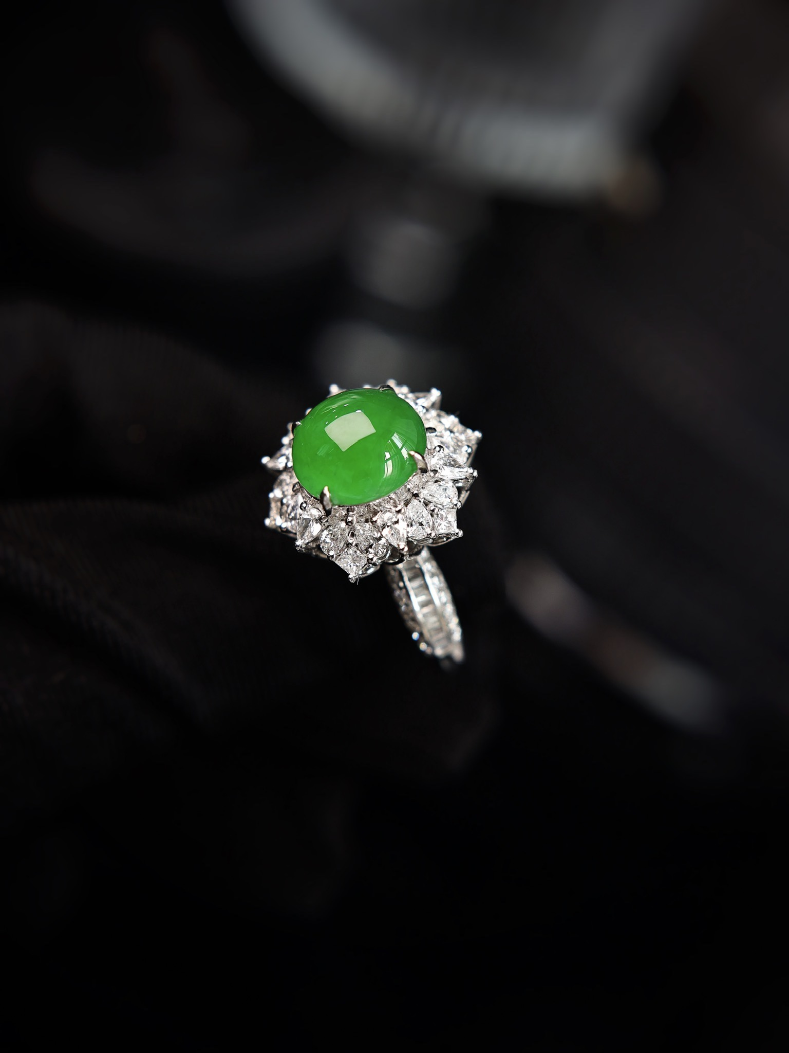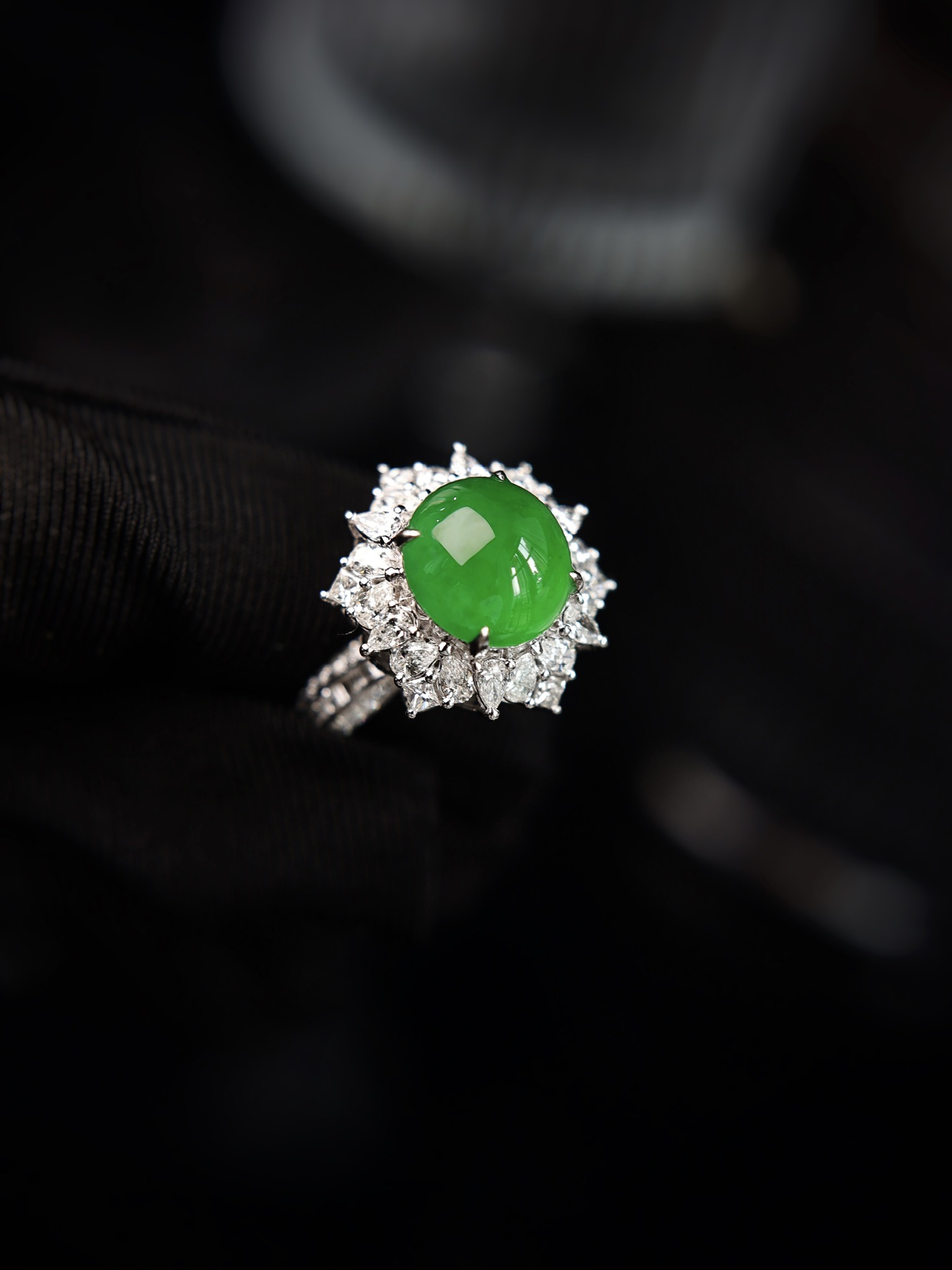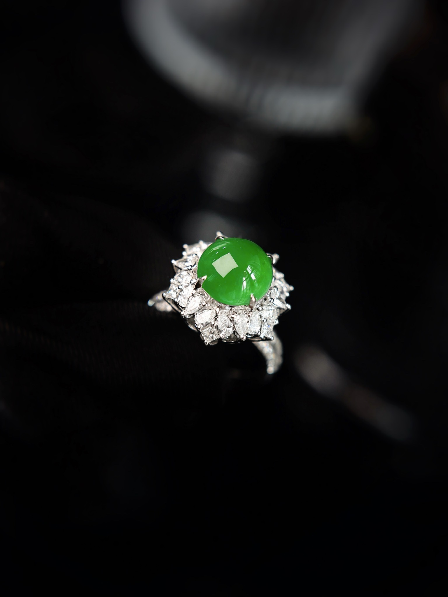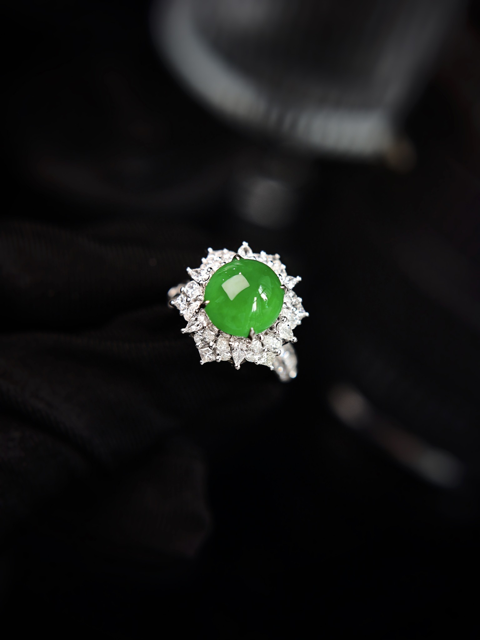 Emerald ring, 18k gold set with green egg face ring, overall: 18.7-17.2-13.8, bare stone: 10.7-10.0