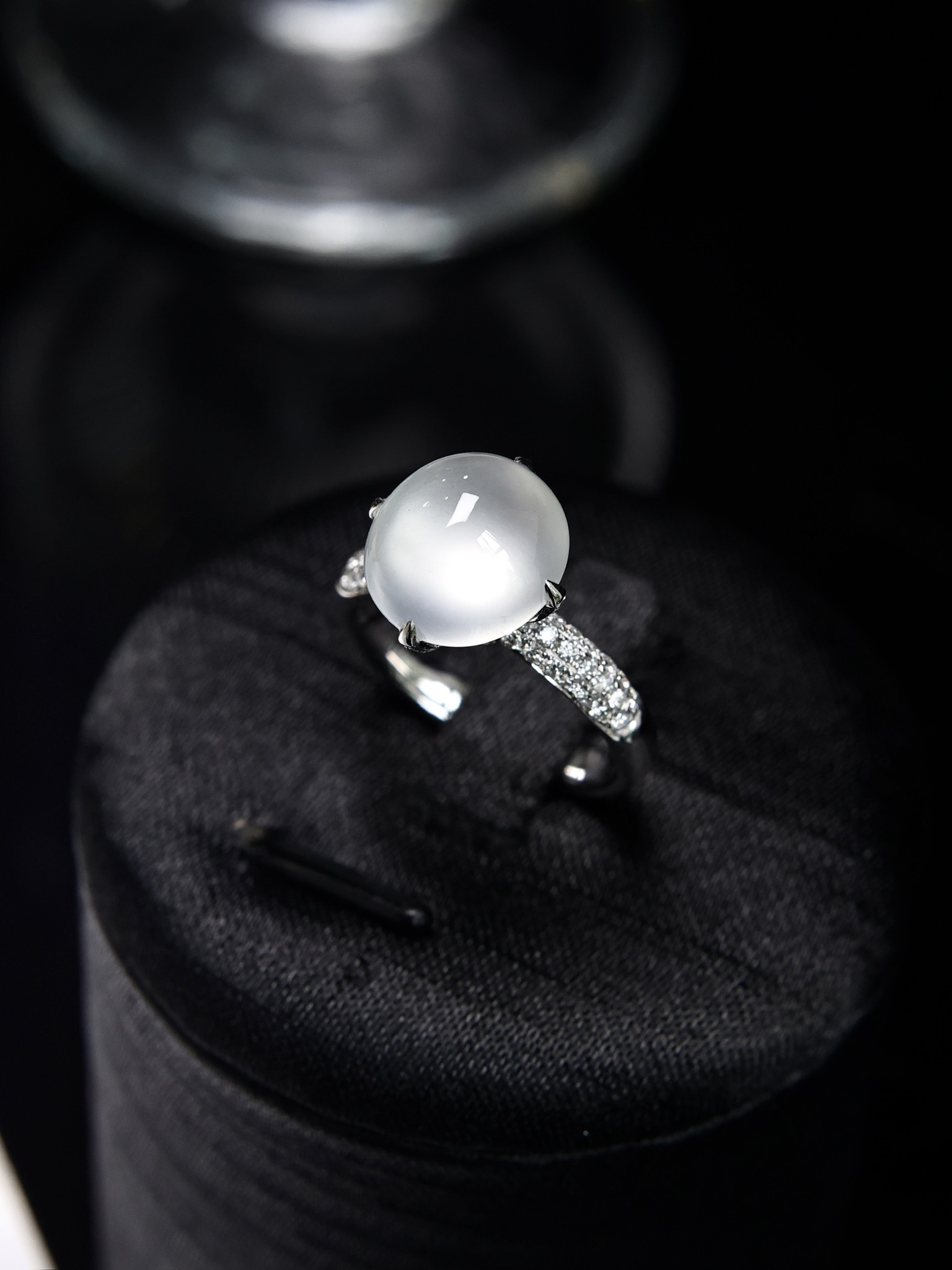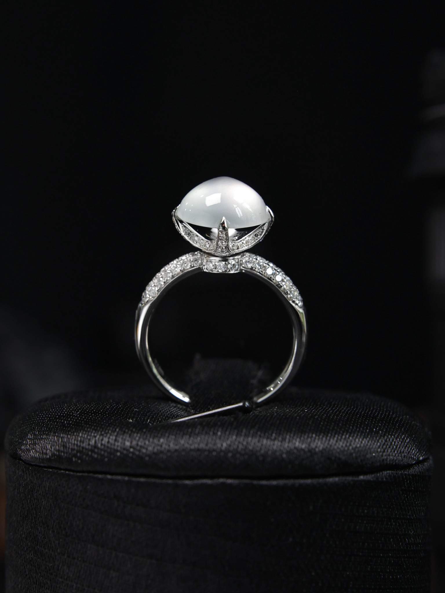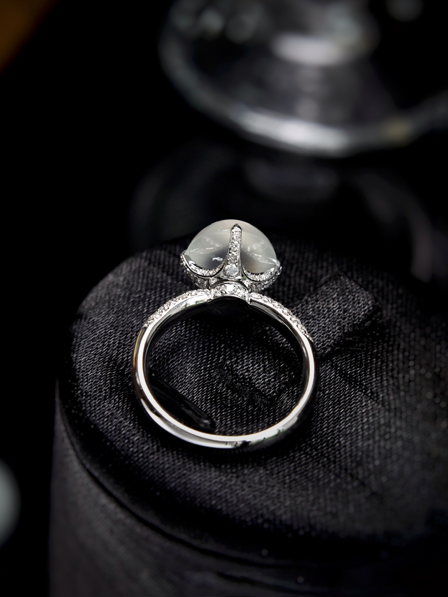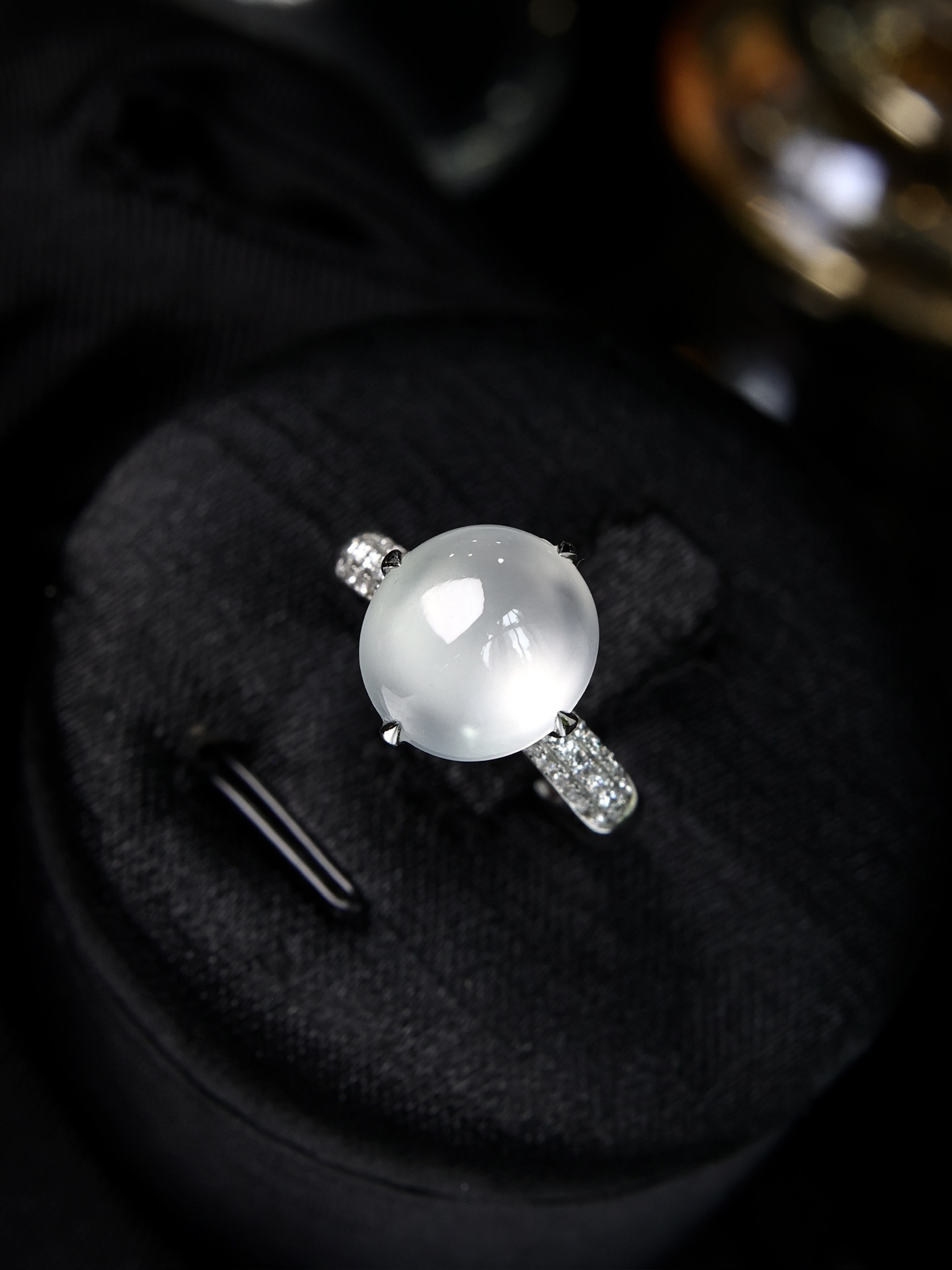 Emerald ring, 18k gold set egg face ring, bare stone: 11.3-10.7