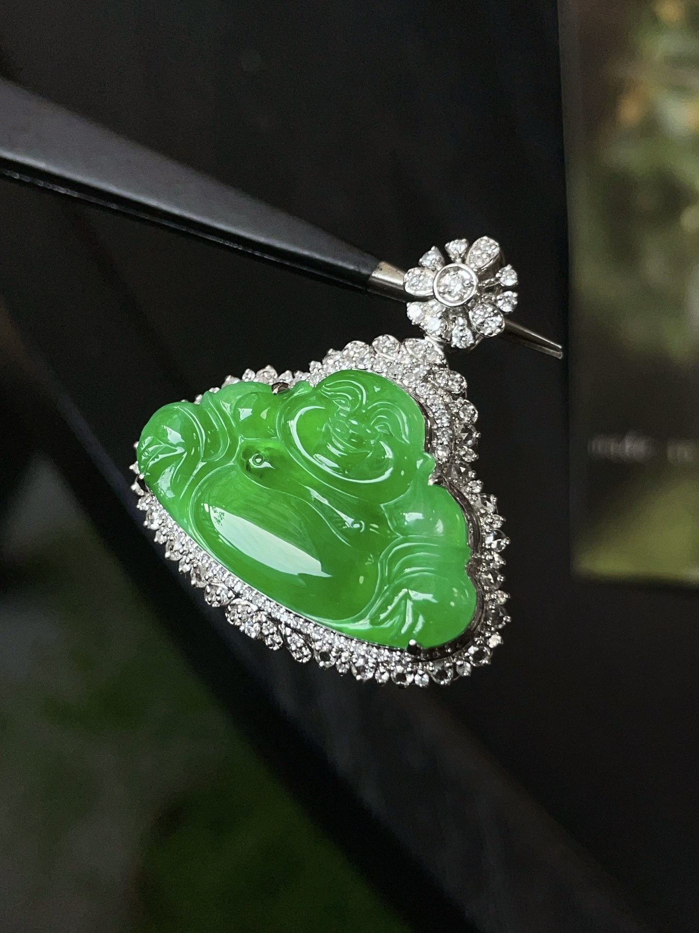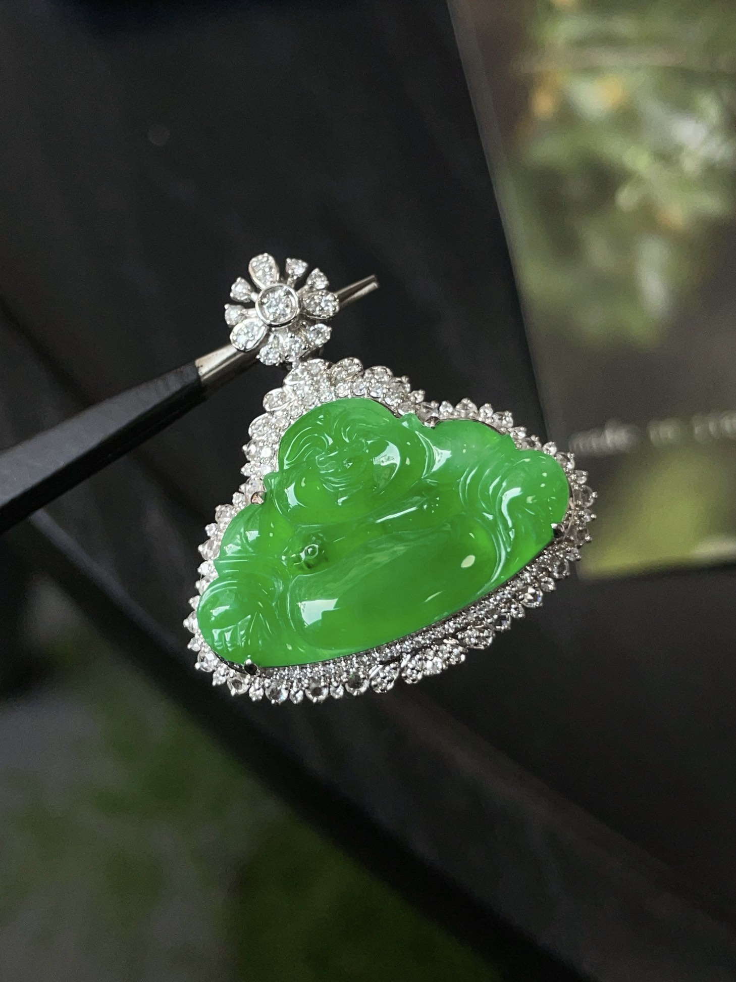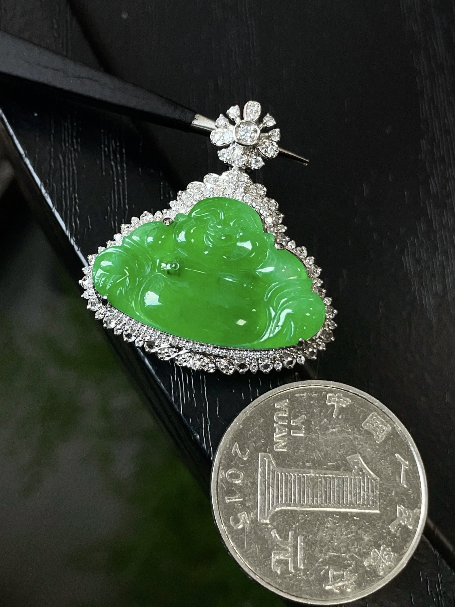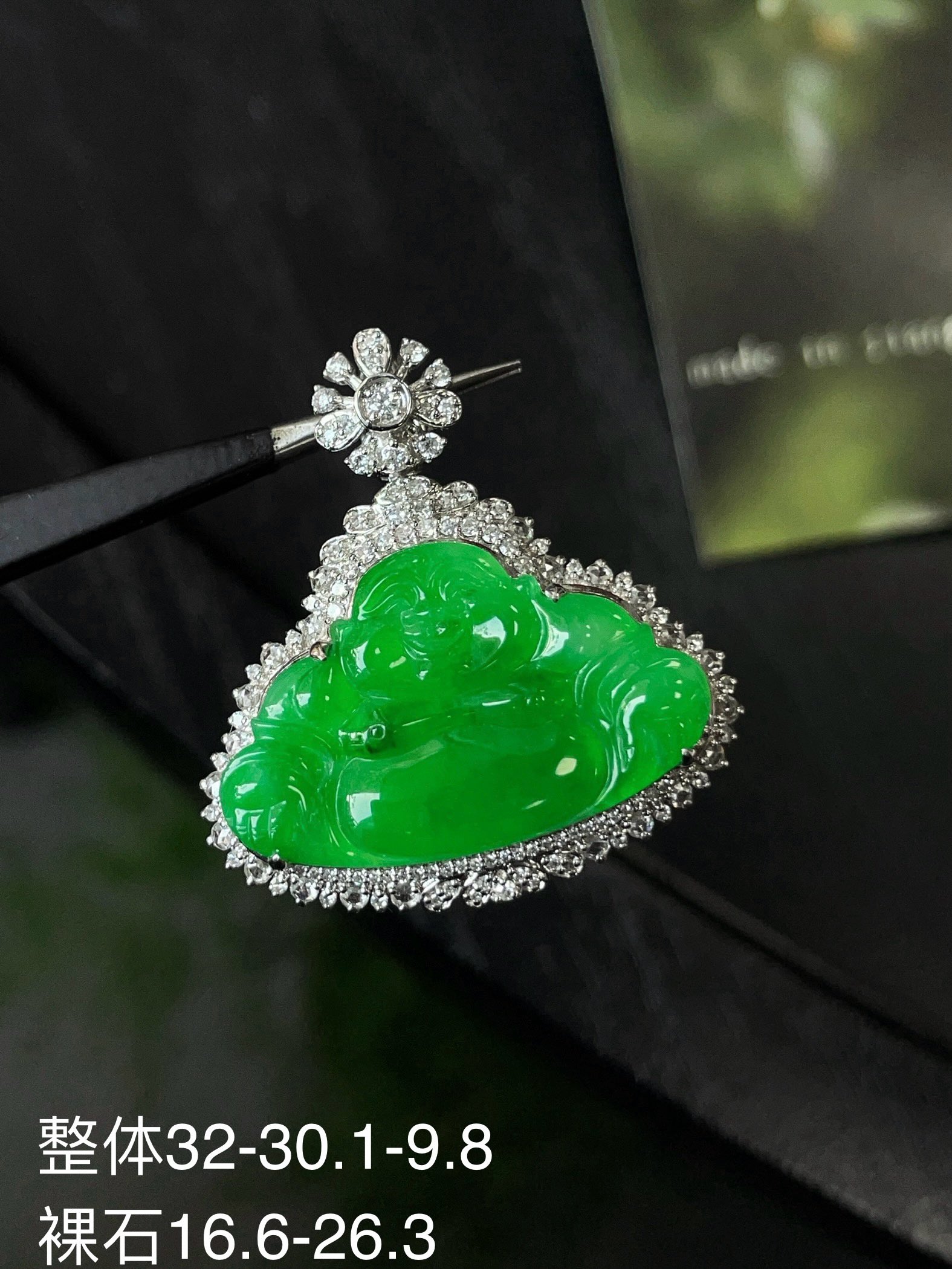 Jade pendant, 18k gold studded with green Buddha Gong pendant, overall: 32.0-30.1-9.8, bare stone: 16.6-26.3