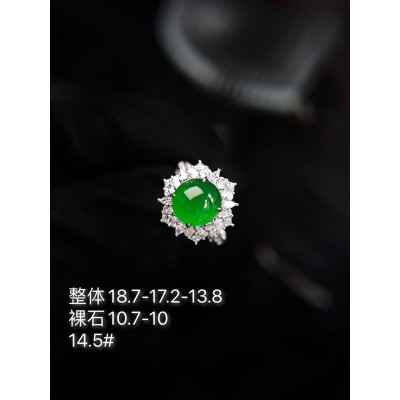 Emerald ring, 18k gold studded with green saddle ring, bare stone: 9.7-19.6