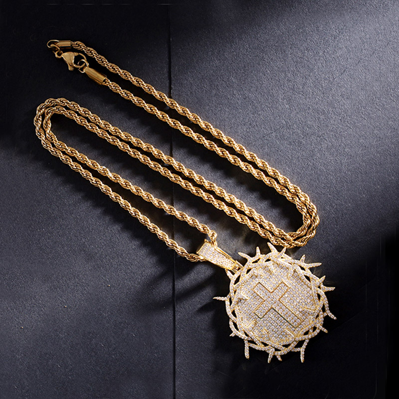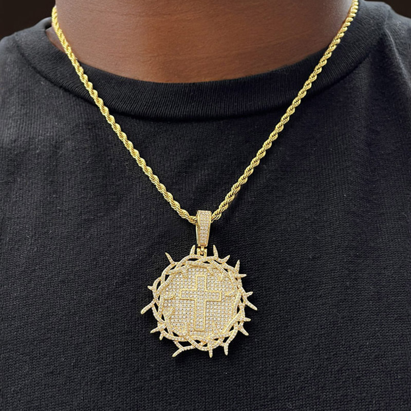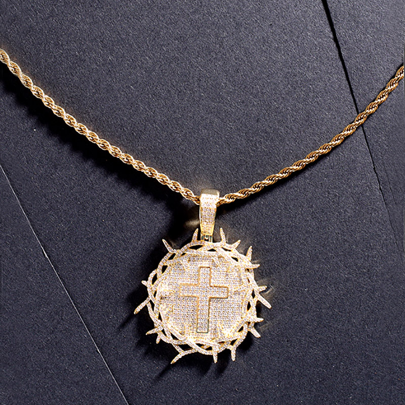 Helloice Iced Crown of Thorns with Cross Medallion Pendant