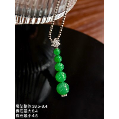 Jade pendant, 18k gold studded with green beads pendant, overall: 38.5-8.4, bare stone maximum: 8.4, minimum: 4.5